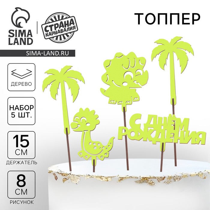 Топпер для торта «С Днём Рождения», динозавры, ассорти, набор, 5 шт.