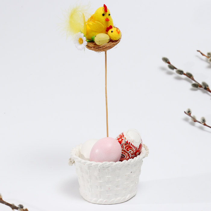 Пасхальный декор на палочке «Курочка в гнезде» 8×8×30 см