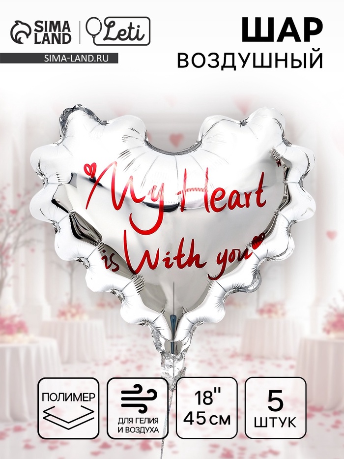 Воздушные шары фольгированные 18" «Моё сердце», набор 5 шт.