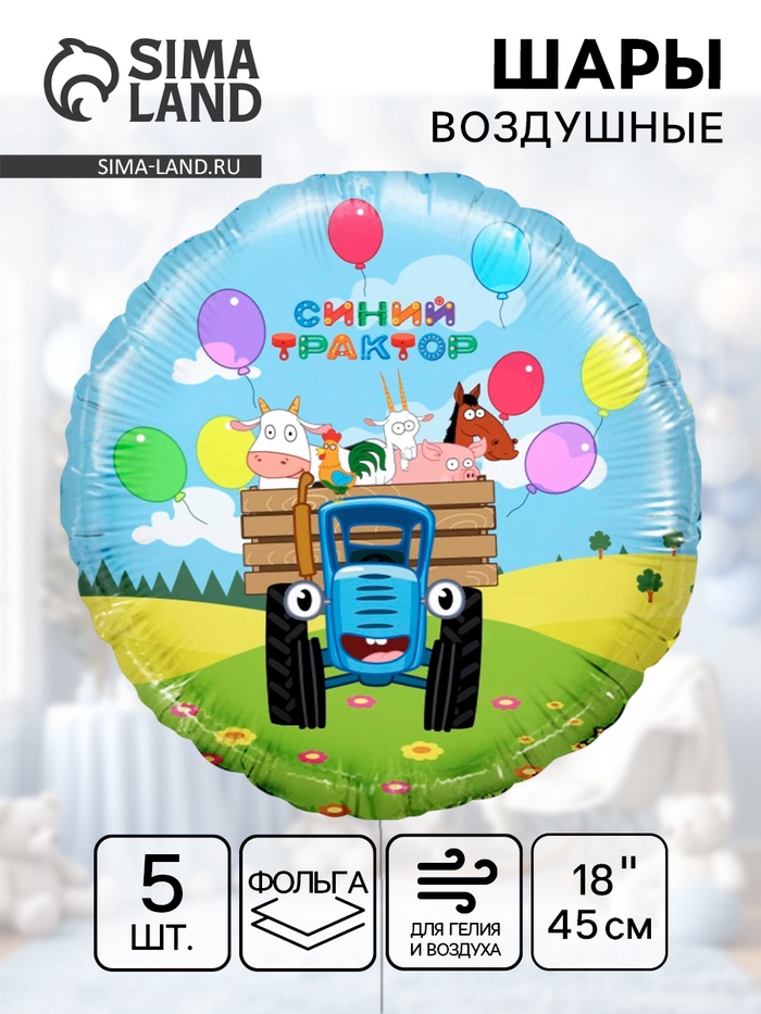 Воздушный шар фольгированный 18" «Весёлое путешествие. Синий трактор», 5 шт.