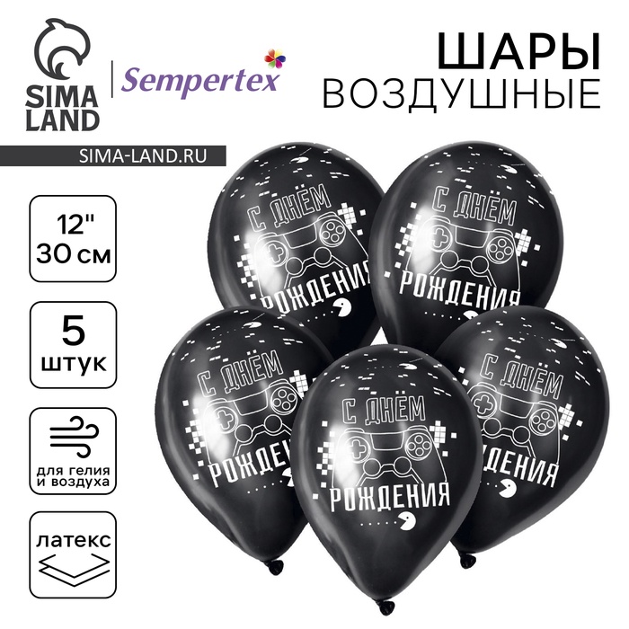 Воздушные шары латексные 12" «С Днём рождения Геймеру», 5 шт.