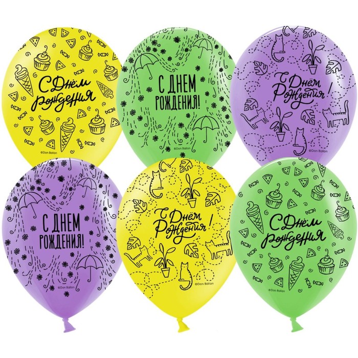 Шар воздушный «С Днем рождения!», 12 дюйм, латексный, 5 штук, Союзмультфильм