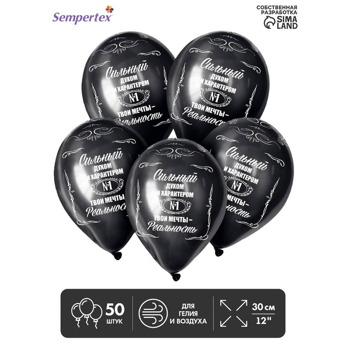 Воздушный шар латексный 12" «Сильным!», пастель, цвет чёрный, 50 шт.