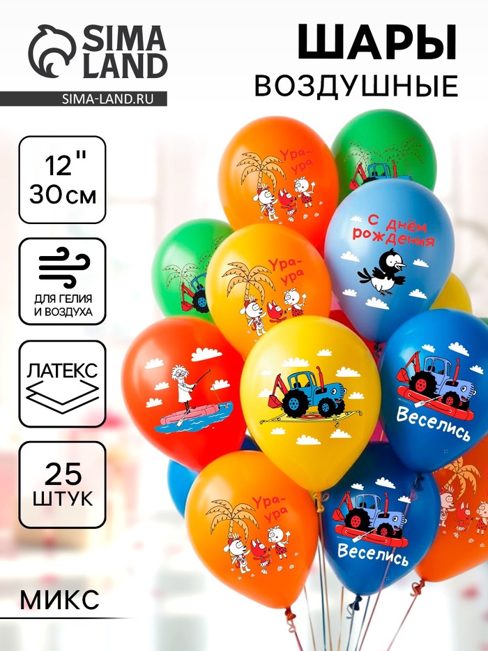 Шары воздушные латексные 12'' «Синий трактор», пастель, односторонний, набор 25 шт., МИКС