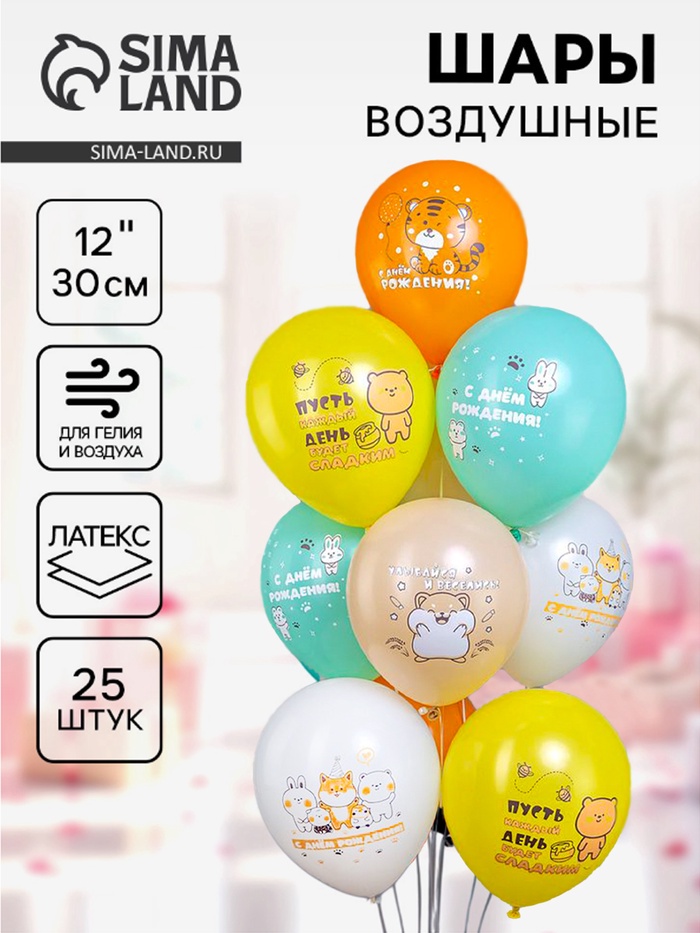 Воздушные шары латексные 12" «СДР! Милые животные», 25 шт. МИКС