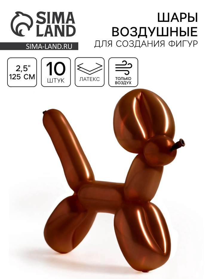 Воздушные шары для моделирования 125 см, d=2.5 см, 10 шт., макарунс, шоколадные