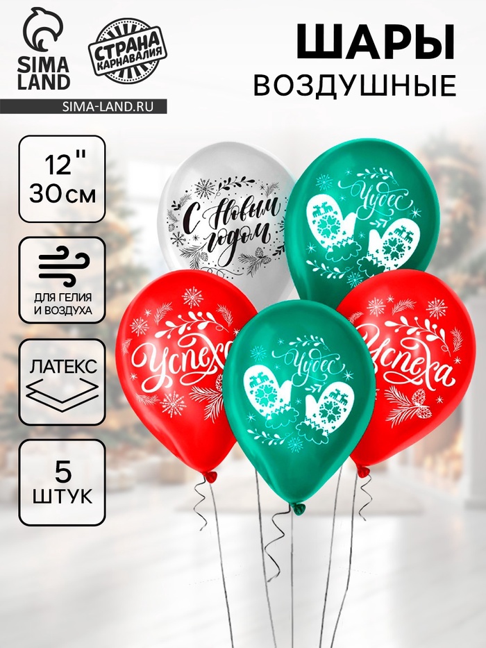 Воздушный шар латексный 12" «Новогодние радости», 5 шт.