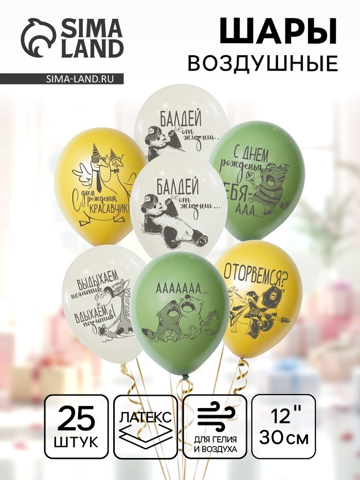 Воздушный шар латексный 12" «С днём рождения по - мужски», 25 шт.