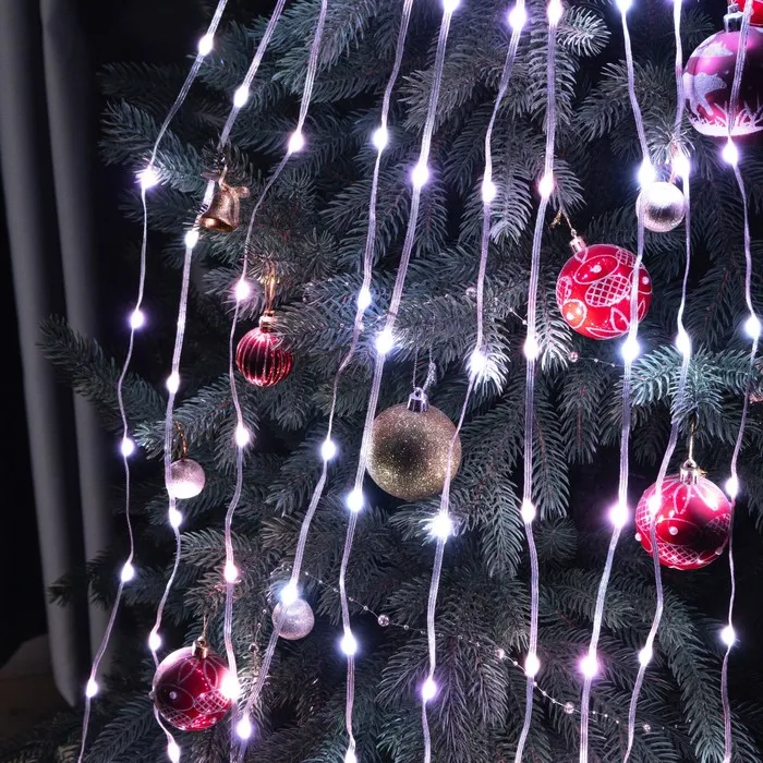 Гирлянда «Нить» 20 м роса, IP20, медная нить, 200 LED, свечение тёплое белое, 12 В