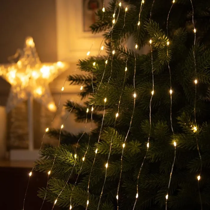 Гирлянда «Конский хвост» 10 нитей по 1 м, IP20, серебристая нить, 100 LED, 2 режима, батарейки AAх3 (нет в комплекте), свечение тёплое белое