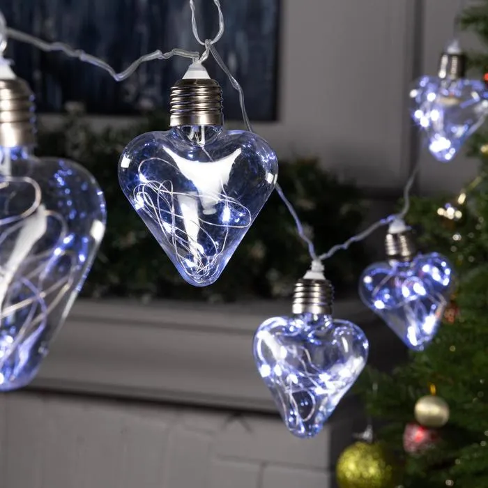 Гирлянда «Нить» 3 м с насадками «Лампочки сердца», IP20, прозрачная нить, 80 LED, свечение белое, 8 режимов, 220 В