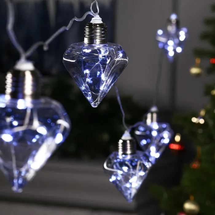 Гирлянда «Нить» 3 м с насадками «Лампочки кристалл», IP20, прозрачная нить, 80 LED, свечение белое, 8 режимов, 220 В