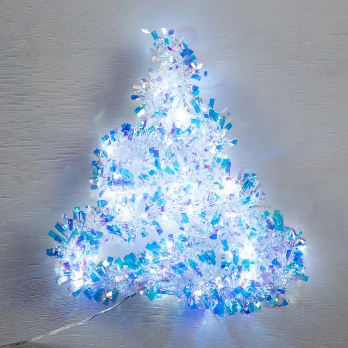 Гирлянда «Мишура» 1 м роса, IP20, серебристая нить, 100 LED, 2 режима, батарейки AAх3 (нет в комплекте), свечение тёплое белое