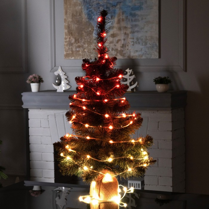 Гирлянда «Нить» 10 м роса, IP20, чёрная нить, 100 LED, свечение мульти, 12 В