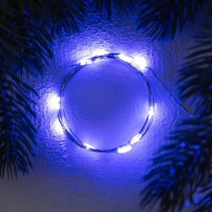 Гирлянда «Нить» 1 м роса. IP20, нить серебристая, 10 LED, 4.6 В, AG13x3 (в комплекте), 3 режима, свечение синее