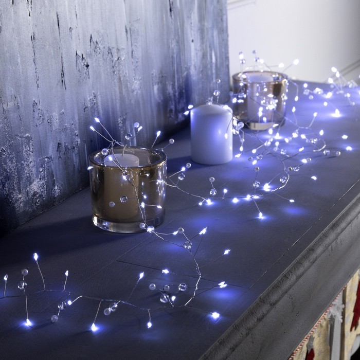 Гирлянда «Мишура» 2 м роса с насадками «Шарики», IP20, серебристая нить, 100 LED, батарейки ААх3 (нет в комплекте), свечение белое
