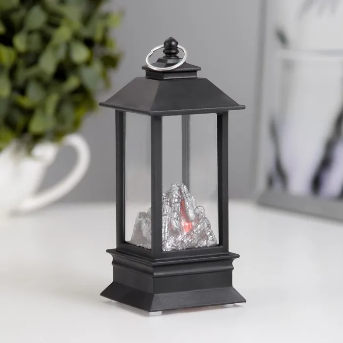 Ночник "Фонарь с углями" LED от батареек 3хLR44 черный 5,5х5,5х13 см