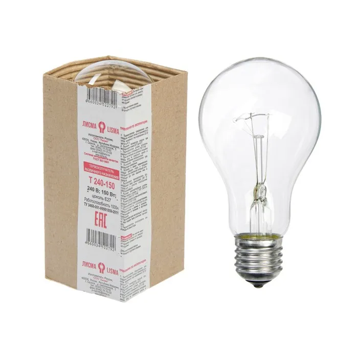 Термоизлучатель «Лисма», А65, Е27, 150 Вт, 230-240 В