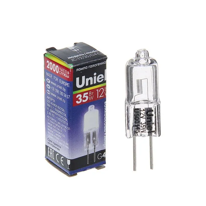 Лампа галогенная Uniel, G4, 35 Вт, 12 В, прозрачная