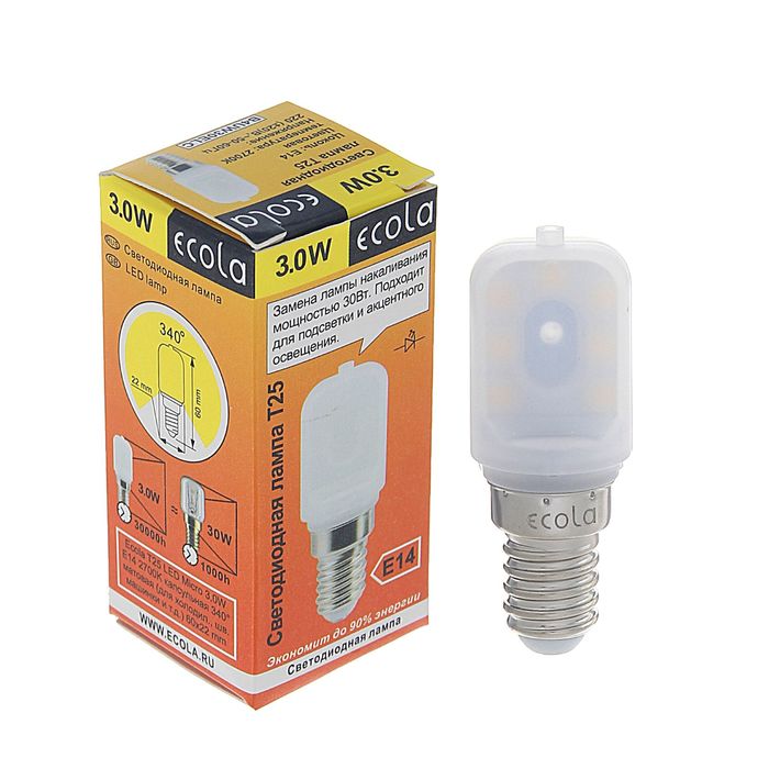 Лампа светодиодная Ecola, T25, 3 Вт, 2700К, 340°, для холодильников и швейных машин