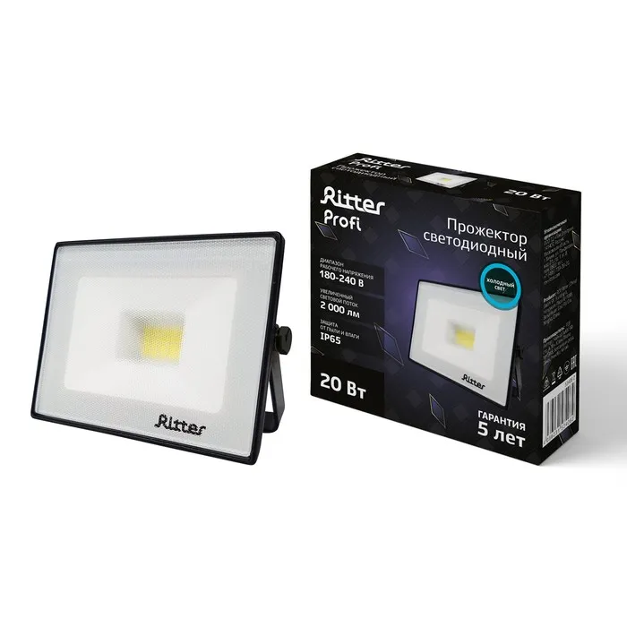 Прожектор светод серия PROFI, 230В, 20Вт, 6500К, 2000Лм, IP65, черн, гарантия 5 лет 53406 2