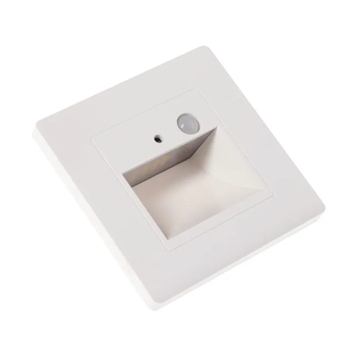 Встраиваемый светильник для лестницы с датчиком движения, 1.5 Вт, 60 Лм, 3000К, 86×86 мм, 220 В, белый, свечение тёплое белое