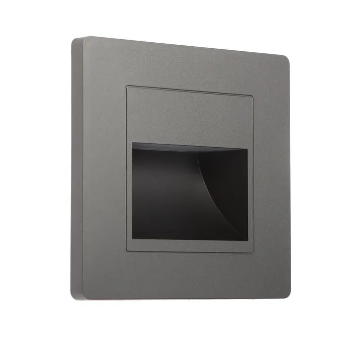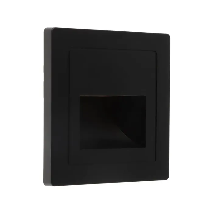 Встраиваемый светильник для лестницы, 1.5 Вт, 60 Лм, 3000К, 86×86 мм, IP20, 220 В, чёрный, свечение тёплое белое