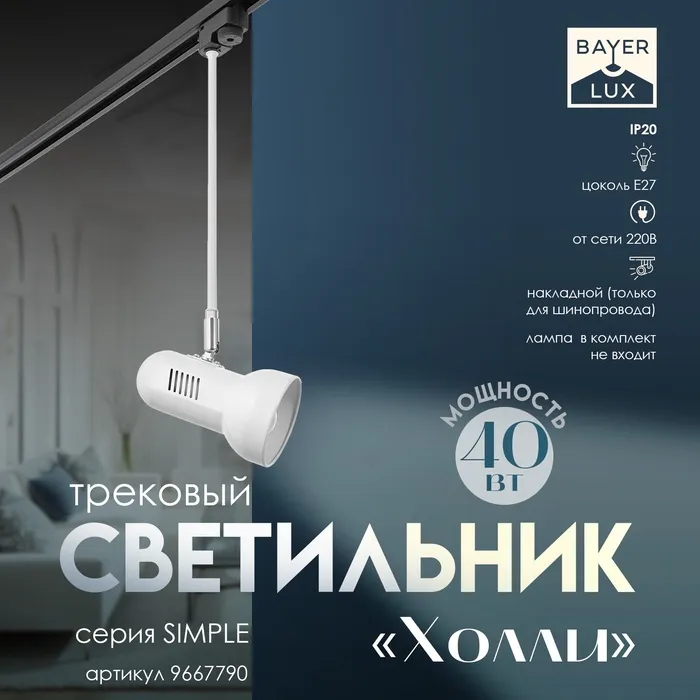 Светильник трековый Simple "Холли" Е27 40Вт белый 15х9х40см