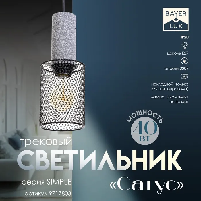 Светильник трековый Simple "Сатус" Е27 40Вт черный 10х10х26-126см