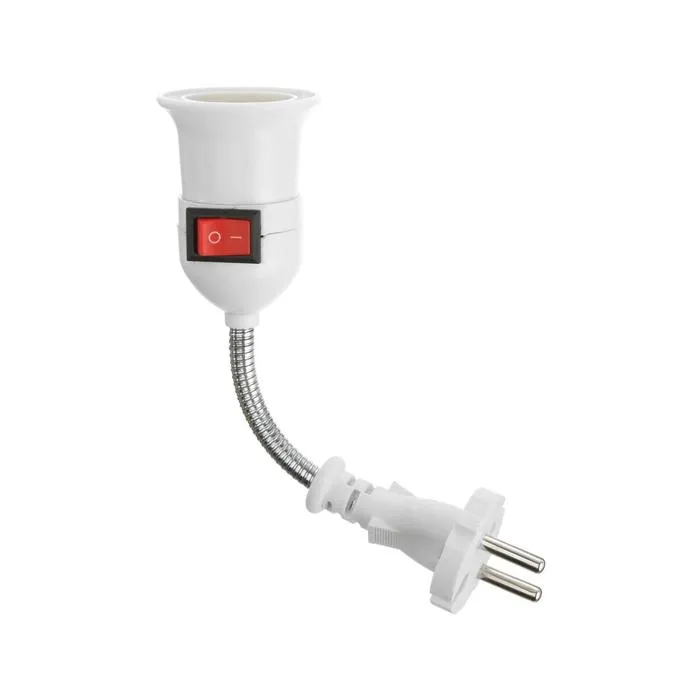 Переходник вилка-патрон, E27, гибкий 100 мм c выключателем, белый