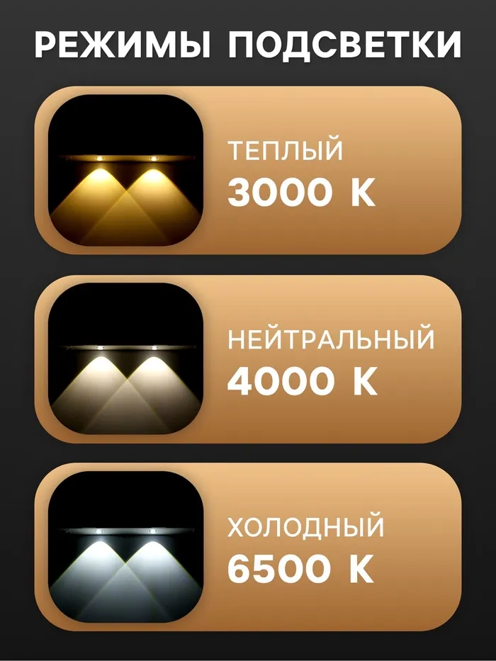 Светильник светодиодный с датчиком движения, 2 Вт, от аккумулятора, 30 см, 3000К-6500К, 3 цвета свечения