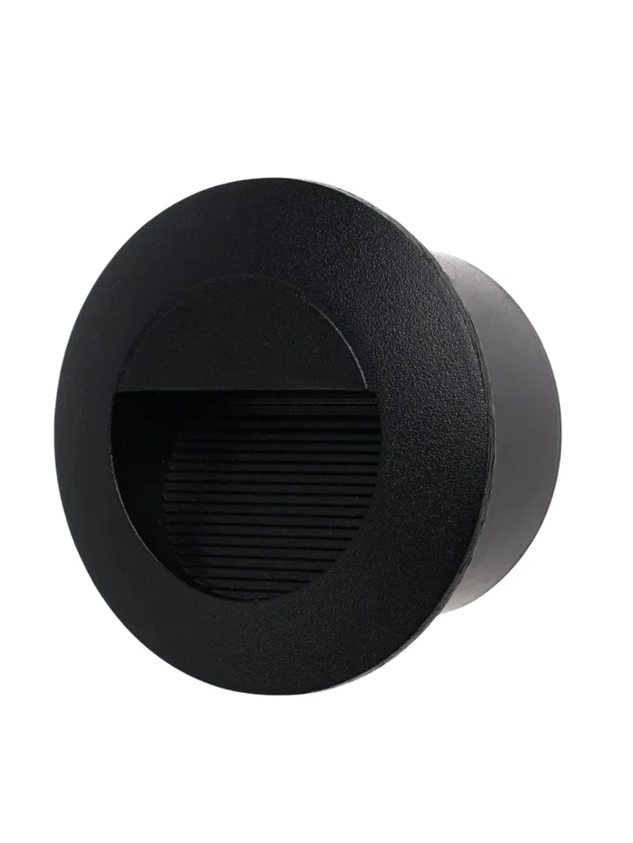 Встраиваемый светильник для лестницы, IP65, 3 Вт, 6500К, 65×65 мм, круглый, чёрный, свечение холодное белое