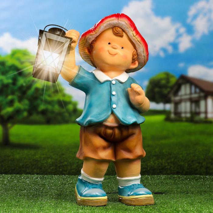 Садовая фигура из полистоуна «Гномик-грибочек с фонарём», 21×15×45 см