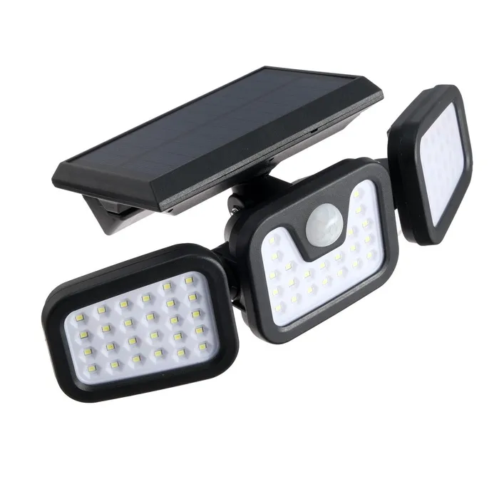 Садовый светильник, уличный, на солнечной батарее, 49 LED, с датчиком движения, накладной, свечение белое