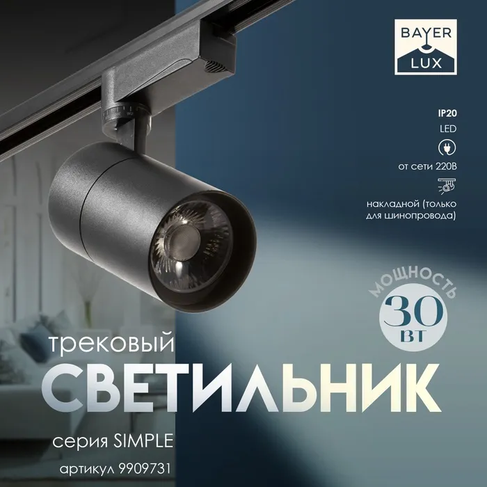Трековый светильник Luazon Lighting, 30 Вт, 2700 Лм, 4000К, белый, свечение нейтральное белое