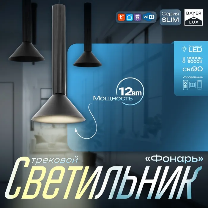 Светильник трековый SLIM "Фонарь" LED 12Вт 3000K-6000К 48V CRI90 черный 17х17х39-139см