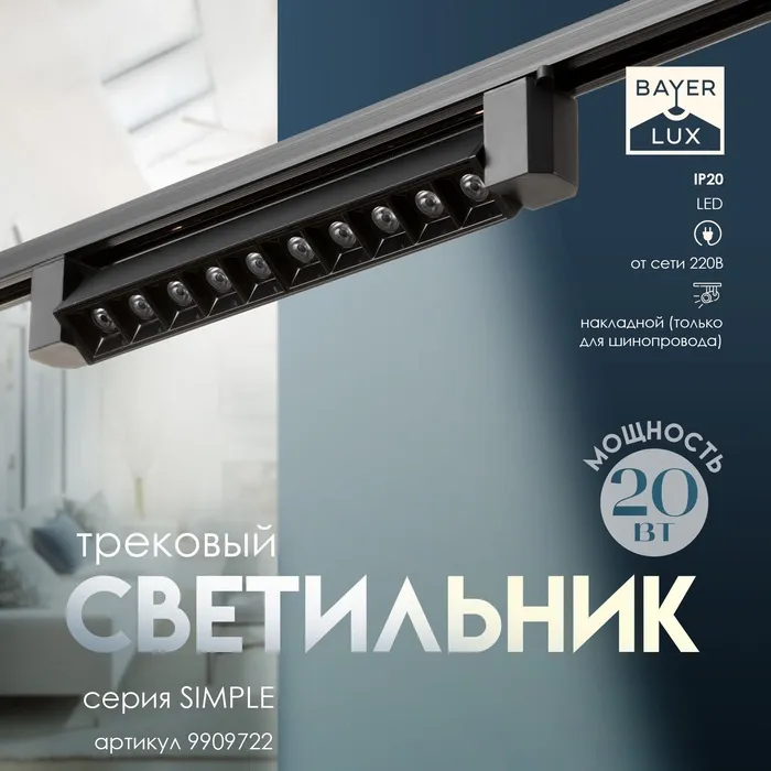 Трековый светильник Luazon lighting, LTL-007, 20 Вт, 1400 Лм, 6500 K, белый, свечение холодное белое