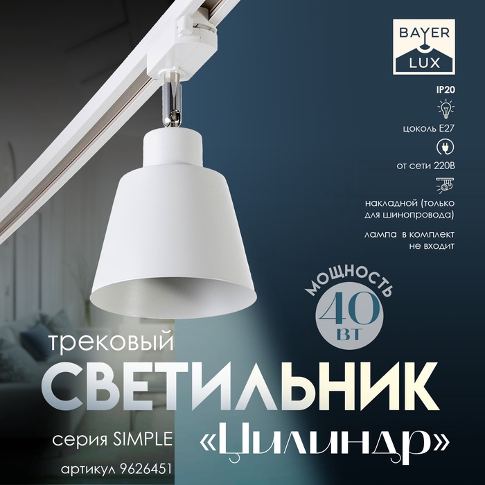 Светильник трековый Simple "Цилиндр" Е27 40Вт белый 17х12х18см