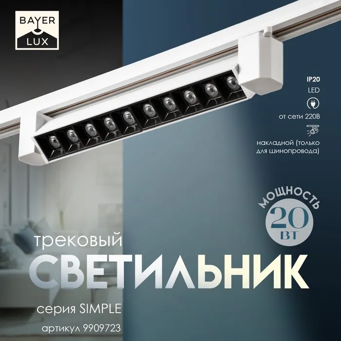 Светильник трековый SIMPLE "Линза" LED 20Вт белый 34х3,5х4,5 см