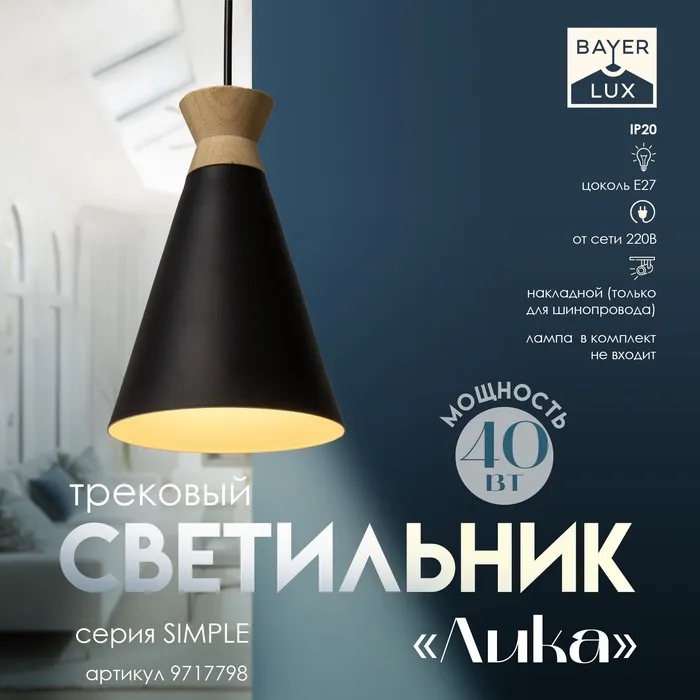 Светильник трековый Simple «Лика» Е27 40Вт черный 14,5х14,5х21,5-121,5см