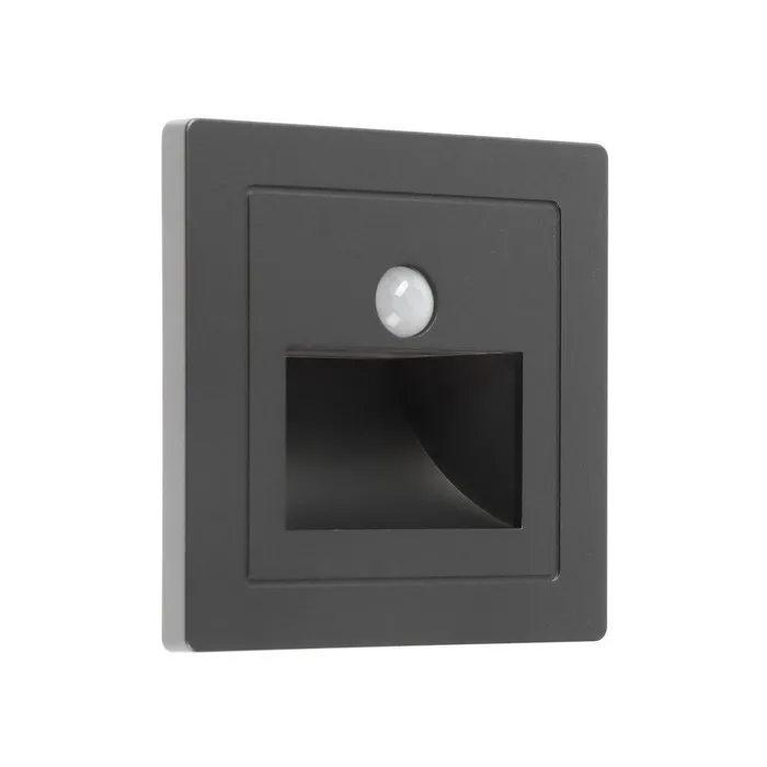 Встраиваемый светильник для лестницы с датчиком движения, 1.5 Вт, 60 Лм, 3000К, 86×86 мм, 220 В, серебристый, свечение тёплое белое