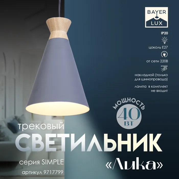 Светильник трековый Simple «Лика» Е27 40Вт серый 14,5х14,5х21,5-121,5см
