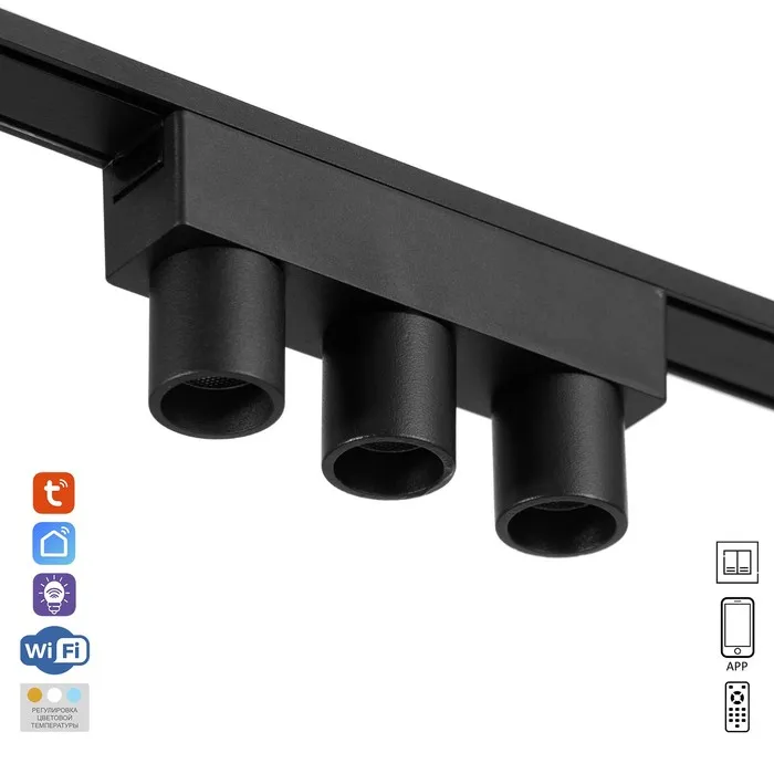 Светильник трековый ULTRA «Три бочонка», светодиодный, 6 Вт, 48 В, 3000K-5700К, CRI90, 12.2×2.6×5.5 см, чёрный