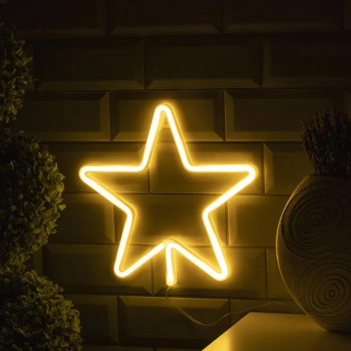 Неоновая вывеска «Звезда» 28 × 28 см, батарейки ААх3 (не в комплекте), USB, свечение тёплое белое