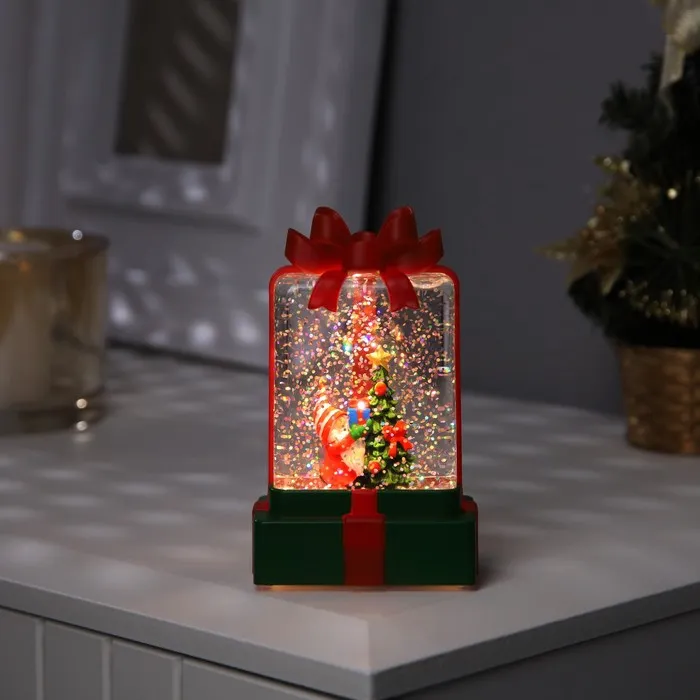 Светодиодная фигура «Домик в зелёном подарке» 6.3 × 11.5 × 6.3 см, пластик, блёстки, батарейки АААх3 (не в комплекте), свечение тёплое белое