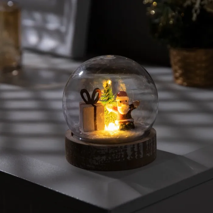 Светодиодная фигура «Шар с Дедом Морозом» 8 × 8.5 × 8 см, дерево, пластик, батарейки AG13х3 (в комплекте), свечение тёплое белое