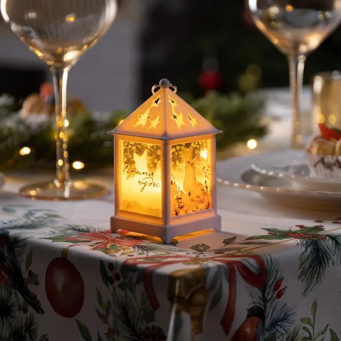 Светодиодная фигура «Белый фонарь с лисой» 6.3 × 12 × 6.3 см, пластик, батарейки AG13х3 (в комплекте), свечение тёплое белое