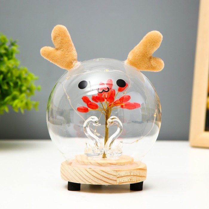 Фигурка светящаяся колба RISALUX «Новогодний олень», LED-ночник, 3×ААА, красный, 11×11×22.5 см