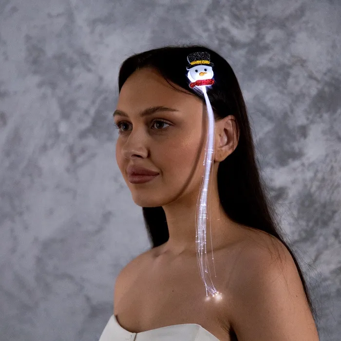 Заколка для волос светодиодная "Снеговик" 33x4 см, 1 LED, батарейки LR1130x2 (в комплекте), свечение белое
