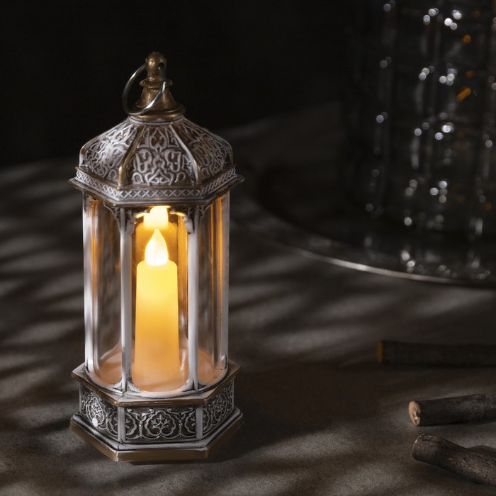 Светодиодная фигура «Свеча в ротонде» 6.3×14×6.3 см, пластик, от батареек AG13×3, свечение тёплое белое